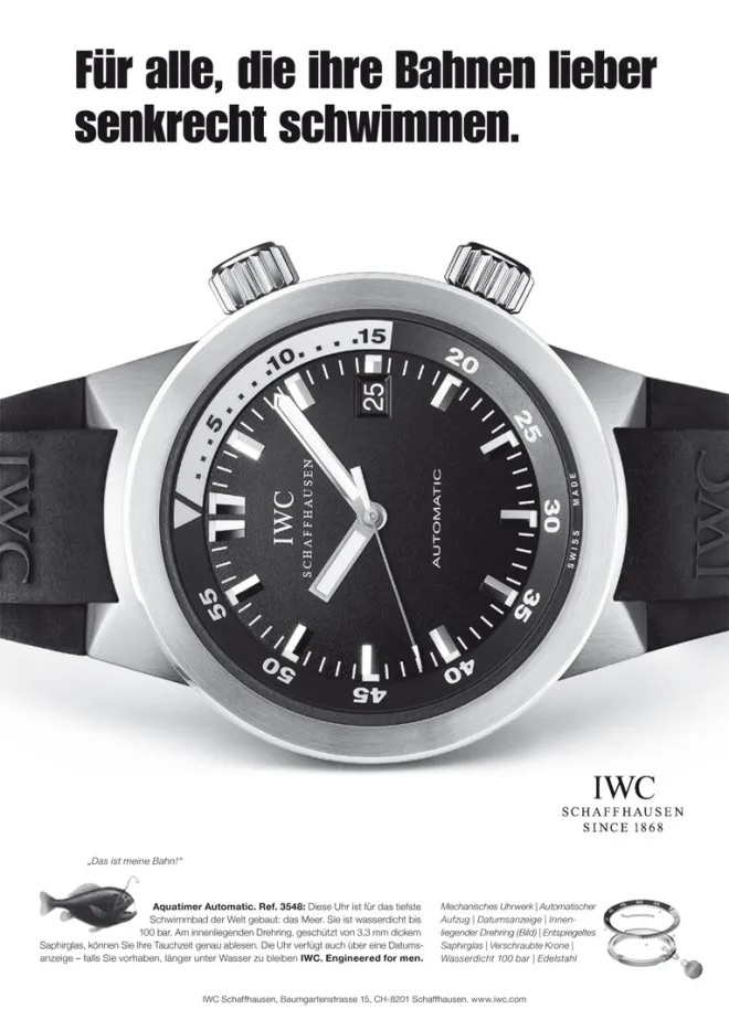 Una reclame del’IWC Acquatimer Automatic degli anni 2000, in questo caso la bellissima referenza IW354807