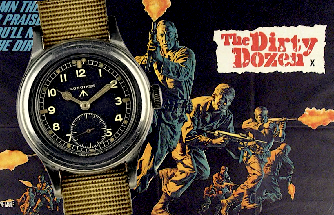 Per chi non lo sapesse, gli orologi soprannominati “The Dirty Dozen”, come il film del 1967 diretto da Robert Aldrich, adattamento dell’omonimo romanzo di E.M. Nathanson, sono Military Watch che risalgono alla Seconda Guerra Mondiale e che fanno parte delle forniture ufficiali dell’esercito britannico. Prima dello scoppio della guerra, il Ministero della Difesa britannico si era rivolto all’industria orologiera svizzera che, in virtù della propria neutralità poté soddisfare la richiesta anche durante il conflitto. Le Maison coinvolte, tra i maggiori produttori di segnatempo elvetici dell’epoca, erano Omega, Jaeger-LeCoultre, IWC, Lemania, Cyma, Buren, Longines, Eterna, Vertex, Record, Timor e Grana, che fornirono un totale di 145.000 esemplari destinati alle Forze Armate di Sua Maestà. La maggior parte di essi andò perduta o distrutta durante il conflitto. Ma molti “sopravvissero”, passando di mano in mano, e di polso in polso, fino al punto di lasciarsi dimenticare come glorioso cimelio di un tempo passato. C’è stato un periodo infatti in cui un orologio vecchio era solo un orologio vecchio. Poi, il tempo, che è notoriamente galantuomo, seppe restituire il giusto valore alle cose. Gli orologi considerati “Dirty Dozen” – con casse comprese tra i 35 e i 38 millimetri, quadrante nero con indici con numeri arabi ad alta visibilità, piccoli secondi a ore sei e sfere di fattura diversa, vetro antiurto e, in molti modelli, con ansa fissa – si differenziavano dagli altri segnatempo della loro epoca in virtù di un logo a forma di freccia stampato sul quadrante e inciso sul fondello. Tale freccia, la British Broad Arrow, è il simbolo che identificava un equipaggiamento appartenente all’esercito britannico. L’abbiamo, infatti, vista ricomparire, simile, sull’Omega Seamaster Diver 300M 007. Tutti gli esemplari erano accompagnati dall’incisione W.W.W. – Wrist Watch Waterproof – e stretti al polso dai cinturini “pre-NATO” di cui abbiamo già parlato in passato. Lontani dall’essere i performanti Mil-sub che abbiamo conosciuto a partire dagli anni ’50 e ’60, i Dirty Dozen rappresentano un feticcio per gli appassionati e in un certo senso i “capostipiti” dei Military Watch, insieme agli orologi “da Aviatore” come gli IWC e gli Omega assegnati sempre alla Royal Air Force britannica. Tutti segnatempo che, se vi chiederanno di scambiare per una patacca, mentre siete a fare le ragnatele davanti a una pinta di Stout, poggiati sul bancone di un pub, andrebbero presi attentamente in considerazione. Non rinunciate mai a vostra moglie, invece, perché invece di un affare vi trovereste in una raccolta di racconti vergati da qualche altro neurologo.