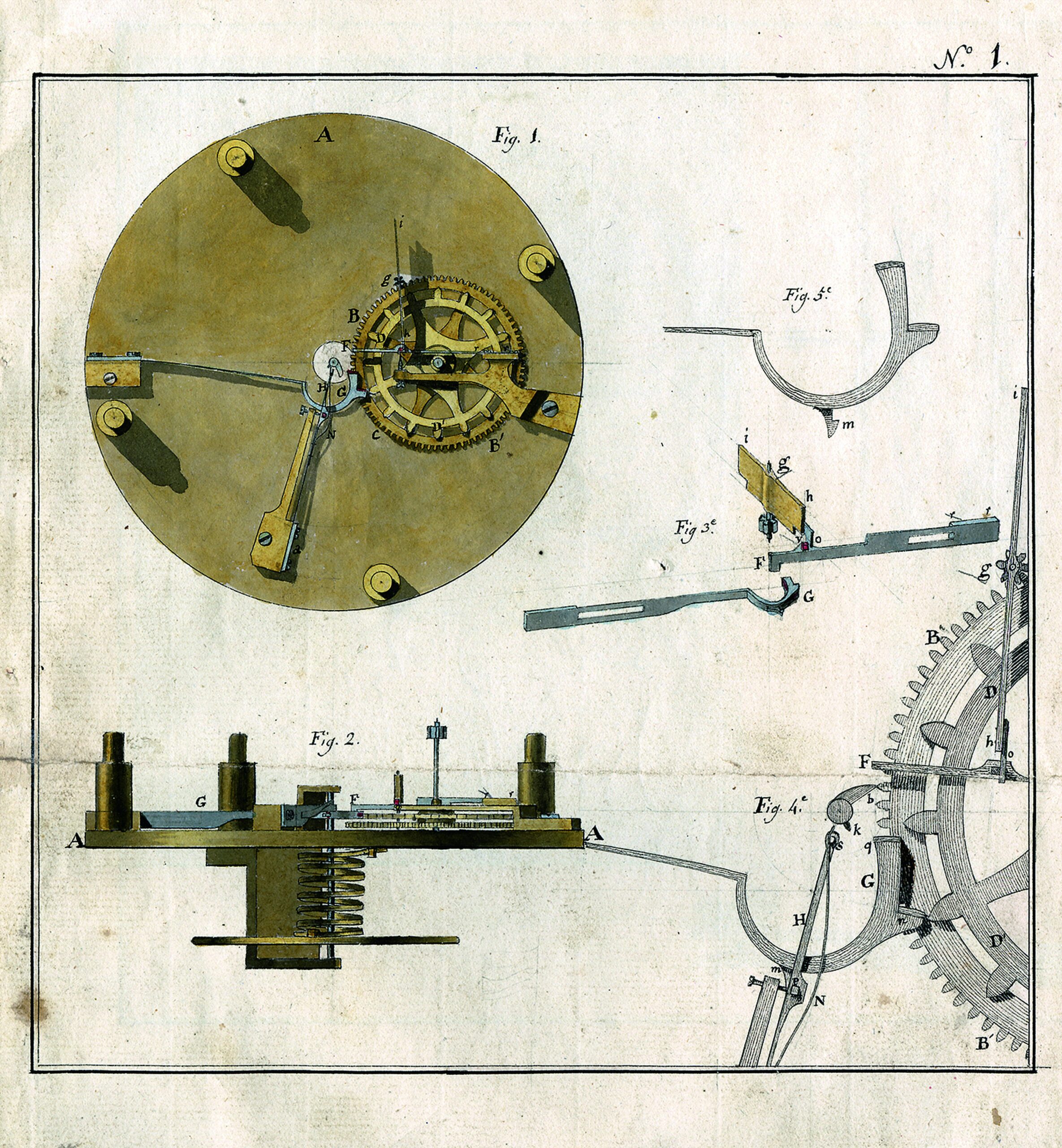 Illustrazioni del brevetto ottenuto da Abraham-Louis Breguet, riferito allo scappamento a forza costante, registrato il 7 marzo 1798.