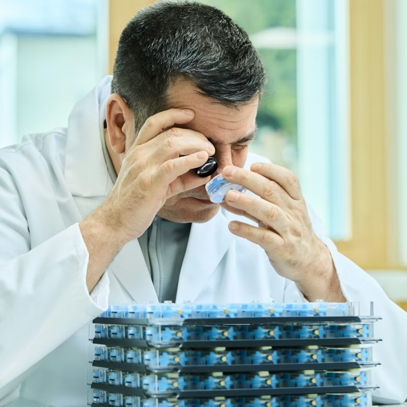 Un tecnico del COSC verifica il corretto funzionamento di un movimento, nel corso delle procedure di certificazione cronometrica