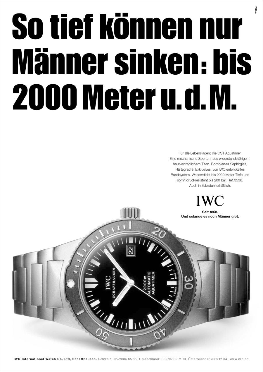 Una reclame del’IWC Acquatimer Automatic degli anni 2000, in questo caso la bellissima referenza IW354807